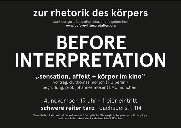 Before Interpretation ist eine Kooperation des Instituts für Volkskunde / Europäische Ethnologie an der LMU München, des Kulturreferats der LH München und body logic.
